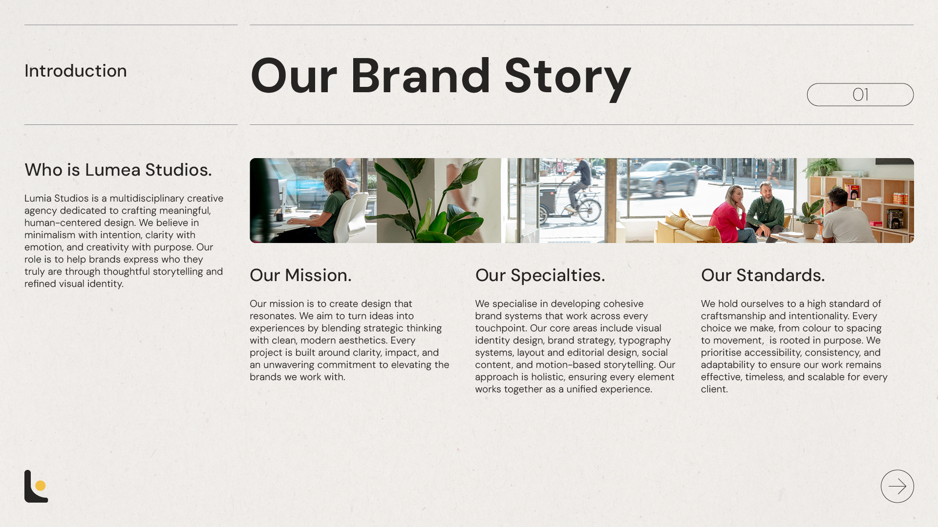 The objective was to create a clear and adaptable brand guideline that reflects Lumea’s minimalist approach while allowing room for creative expression. The challenge was developing a system that is consistent, flexible, and ready to support future client work.